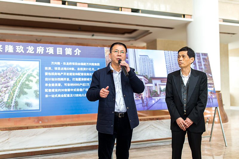万兴隆集团董事长许维蓄和万兴隆集团执行董事许平分别向华安县领导一行介绍了项目规划、园林景观、商业配套等情况,并现场阐述了区域定位“厦漳新城”的概念,表示将全力打造区域人居中心及商业中心,努力为华安经济开发区的经济和社会发展做出积极的贡献。